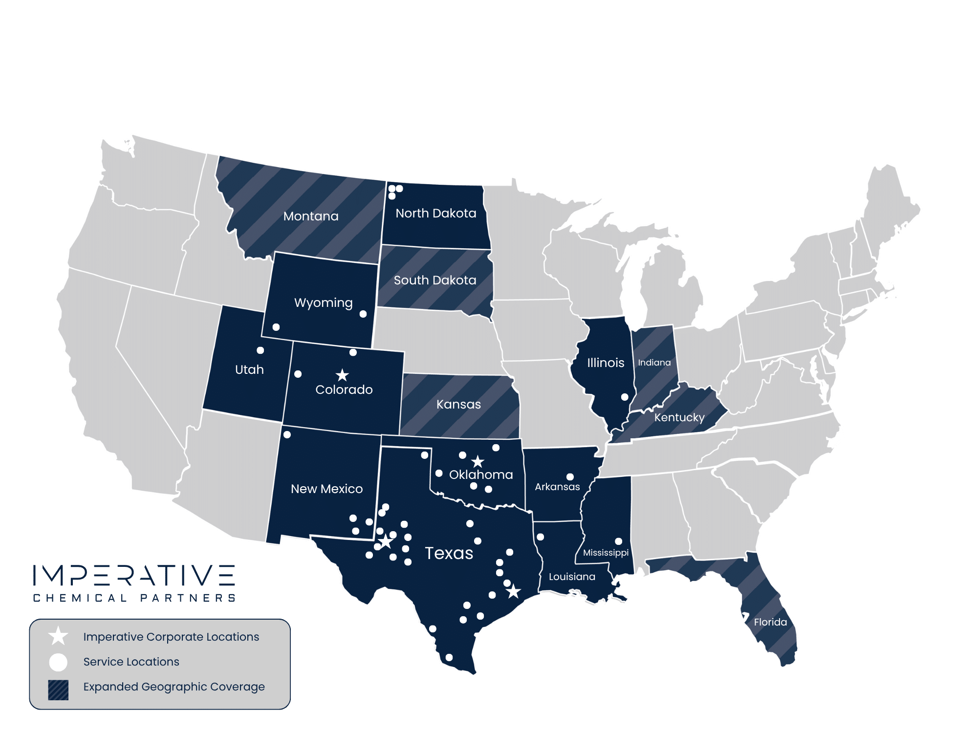 With over 30 service locations across Texas, New Mexico, Louisiana, Oklahoma, Arkansas, Illinois, North Dakota, Utah, Wyoming, and Colorado, Imperative is always close to the action. Whether servicing field sites, midstream operations, or completions, we provide direct, boots-on-the-ground support reinforced by in-house research and digital client support channels. We stand ready to provide clients with scalable solutions at a moment’s notice.